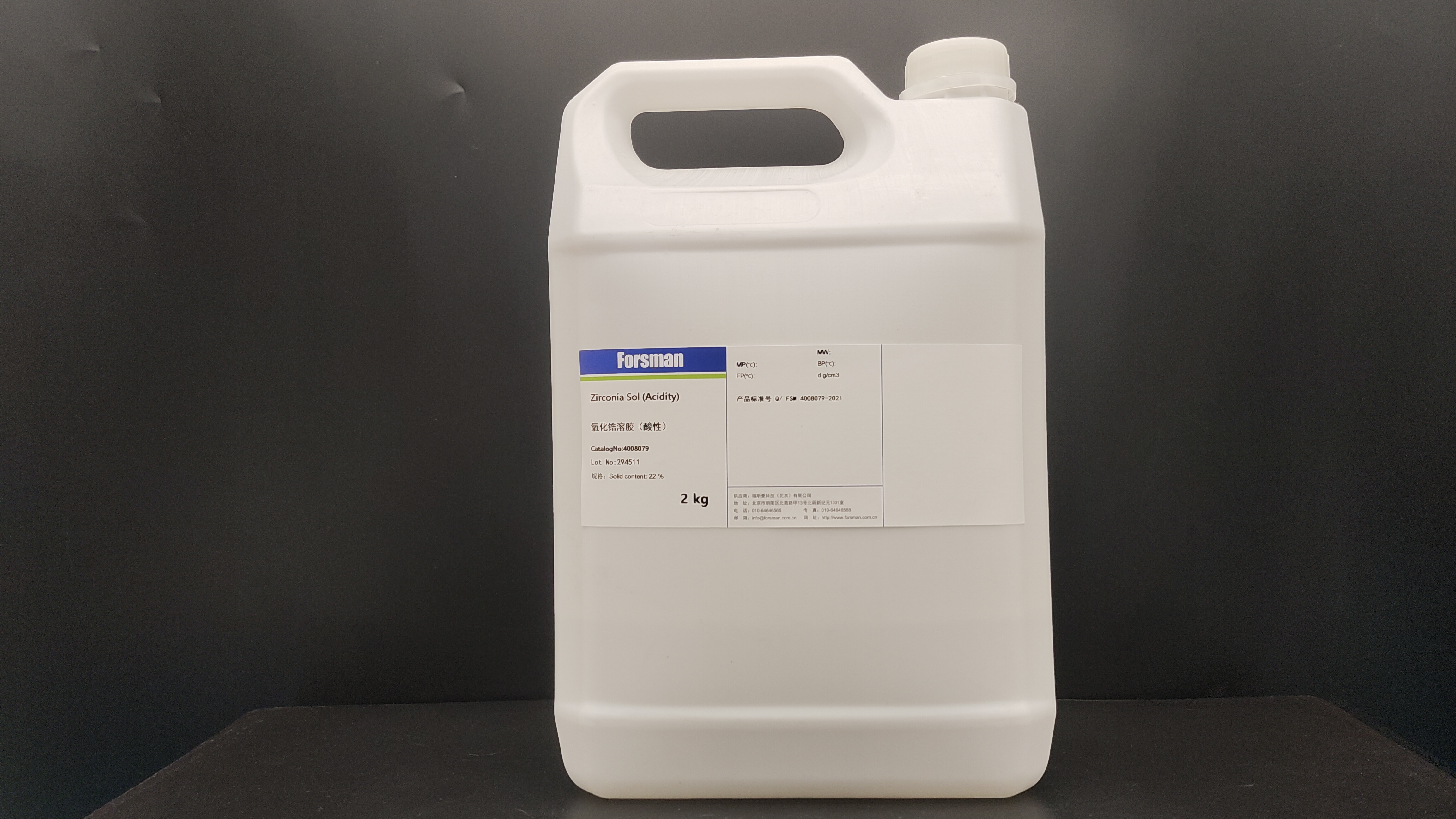 福斯曼氧化鋯溶膠產品有:氧化鋯溶膠(水溶液)、氧化鋯溶膠(乙醇溶液),滿足不同純度固含量和氧化鋯粒度需求;可形成高質量的氧化鋯溶膠有一定的粘度和穩定性。溶膠制備生產實現工業級,標準包裝2kg、10kg等,能夠噸位級供應。